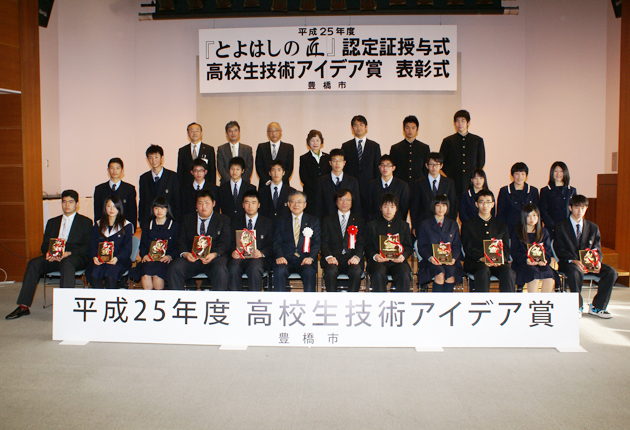 平成25年度「とよはしの匠認定証授与式」と「高校生技術アイデア賞表彰式」が26日、豊橋市役所で開かれた。匠に選ばれた3人と、アイデア賞の最優秀賞、優秀賞、入選を受賞した各高校の生徒らが出席し、佐原光一豊橋市長から賞状を受け取った。 ◇「と...