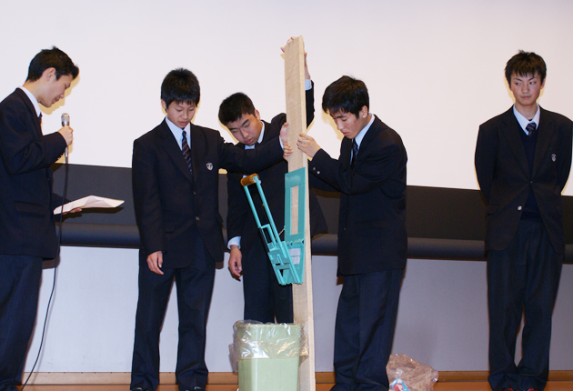プレゼンテーションをする豊川工業高校機械部の生徒たち