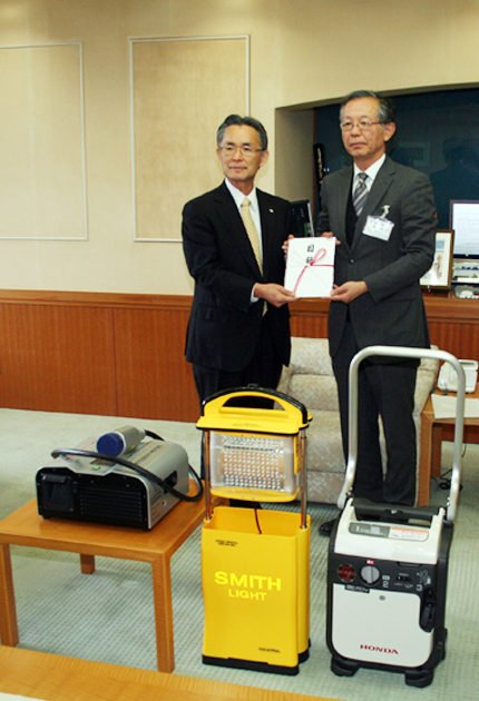 豊橋市神野新田町に本社を置く中部(石原裕社長)は創業50周年を記念し、豊橋市に災害用発電機など98万円相当を寄付した。石原社長が15日、同市役所を訪れ、有安敬副市長に目録を手渡した。 カセットボンベを燃料にして簡単な操作で使える発電機4台...