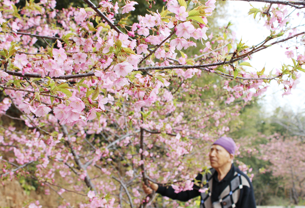 田原市野田町の法光院で河津桜が咲き、春の到来を告げている。ここ数日の陽気に誘われ、濃い桃色のかれんな花を一気につけた。 同所の第一駐車場から第二駐車場までの150メートルの区間にある、4~11年ものの河津桜100本は1日現在、五分咲き。来...