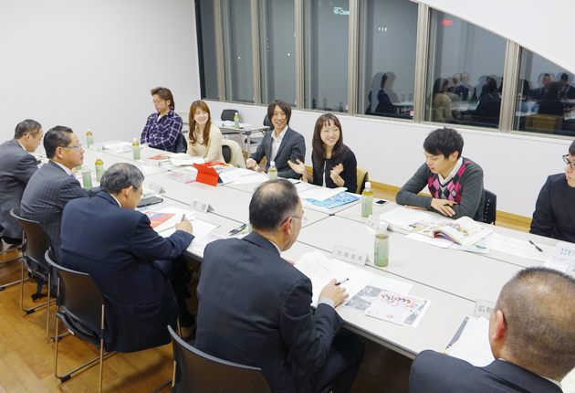 佐原光一市長や佐藤元英会長など豊橋まつり関係者と意見交換する若者ら