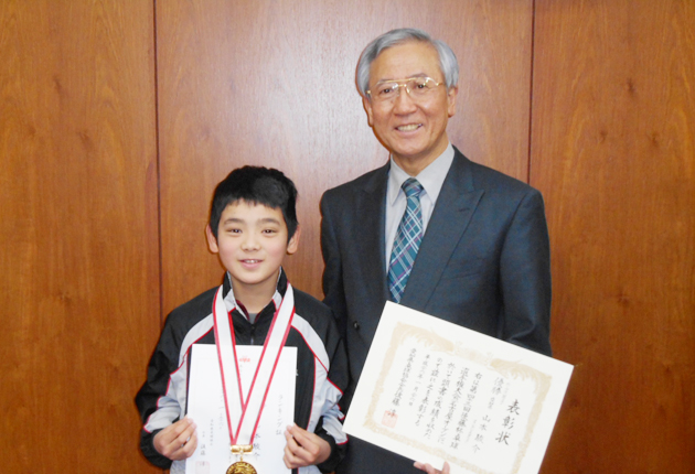 1月25、26の両日岡崎市で開催された第43回後藤杯選手権大会(愛知県卓球協会主催)男子ホープス(小学校5・6年)の部で優勝した山本駿介選手が、嶋津隆文教育長を訪ね、全国優勝の喜びを報告した。 後藤杯選手権大会は、オープン参加の全国大会で...