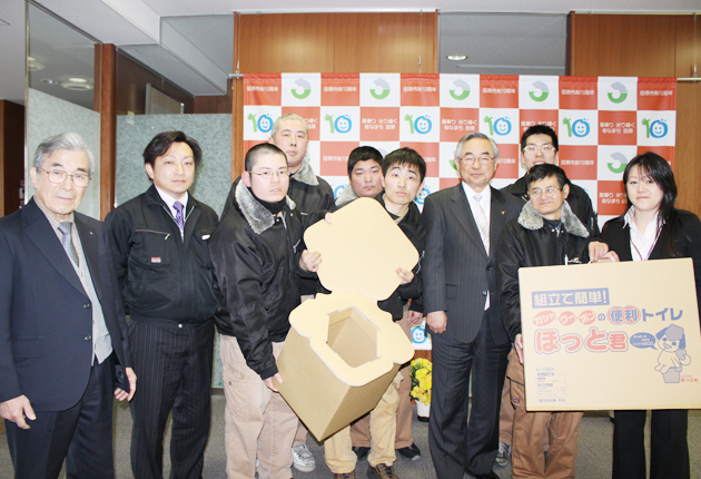 段ボール製品製造・販売業、INOUE FACTORY(イノウエファクトリー)=田原市赤羽根町=は14日、段ボール製組み立て式トイレ「ほっと君」の納品のあいさつに鈴木克幸市長を訪ねた。 障害のある従業員の意見も踏まえ設計。小学生でも簡単に組...