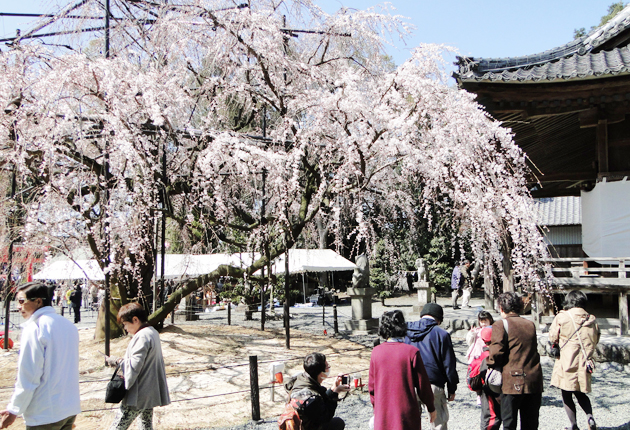 樹齢300年のしだれ桜、夜間はライトアップを行う