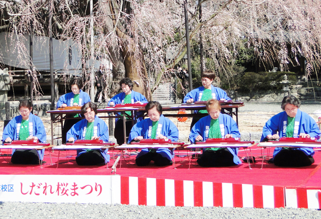 豊橋市野依校区の「しだれ桜まつり」が23日、同市野依町の野依八幡社で開かれた。音楽演奏の披露や模擬店が並び、しだれ桜の下で多くの住民が催しを楽しんだ。祭りは29日まで。期間中は夜間に桜のライトアップを行う。 祭りは16回目の開催。同所のし...
