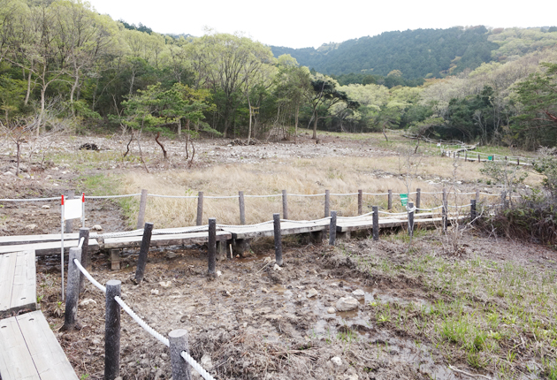 雑木が伐採された葦毛湿原