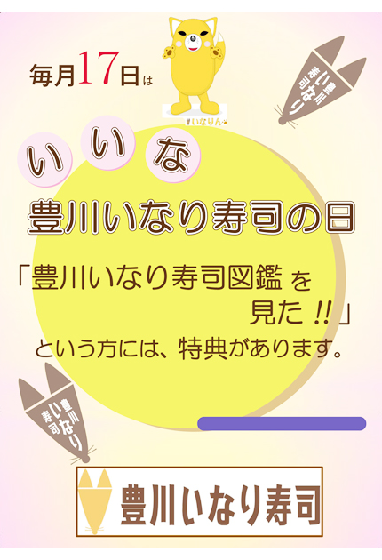 豊川いなり寿司の日/指定店舗が自店で開催/まち歩きも楽しんで/特典いろいろ