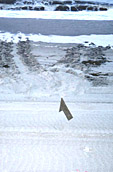 矢印が示している部分がアカウミガメの産卵個所。(豊橋市・西七根海岸で)