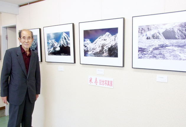 写真展開催中に米寿を迎える白井さ ん(アトリエ辻むらで)