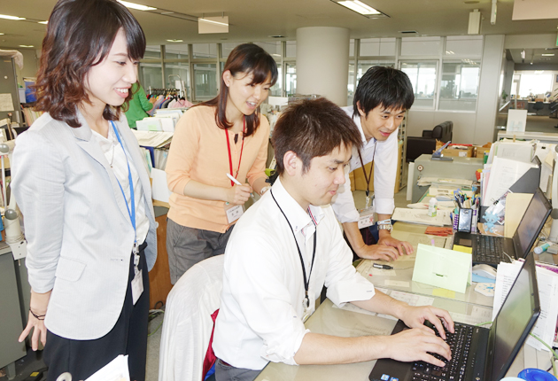市公式フェイスブックを担当する4人の若手職員