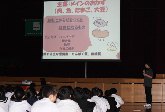グランパス所属管理栄養士招く/田原の野田中で食育講演