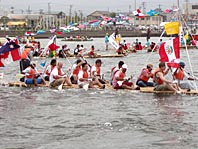 夏の風物詩「第5回三河大島いかだレース」が4日、蒲郡市の沖の三河湾上で行われた。竹島海岸と沖合約3・5キロの三河大島を往復するコースに市内外から42チームが参加した。愛・地球博地域連携プロジェクト事業。 市民ら約2000人の観客が見つめる...