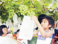 巨峰の袋がけに取り組む児童たち(新城市の舟着小学校で)