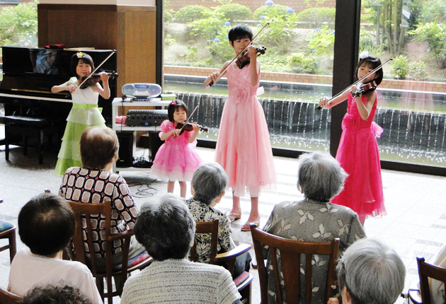 老人保健施設明陽苑(豊橋市八通町)は21日、1階ロビーで4姉妹のバイオリン演奏を楽しむコンサート「わかくさキッズアンサンブルin明陽苑」を開いた。豊橋市多米西町の河合万由子さん(13)など姉妹4人が演奏し、同施設利用者や地域住民が聞き入っ...