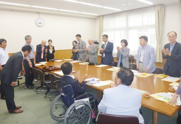 桜丘高校で授業を見学した韓国の視察団