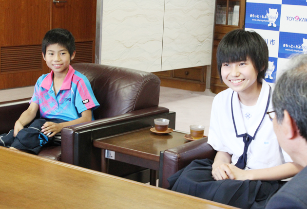 卓球で柴田理彩さんと侑弥君/豊川市長表敬 活躍誓う