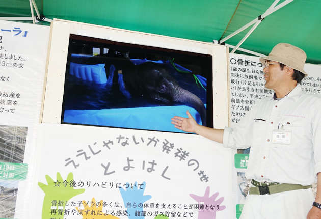 みんなで応援 元気を分けて/リハビリ風景生中継/ゾウ舎前にモニター設置/豊橋総合動植物公園28日から運用開始