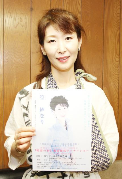 「新曲で紅白歌合戦に」と新曲披露ディナーショーをPRする篁さん