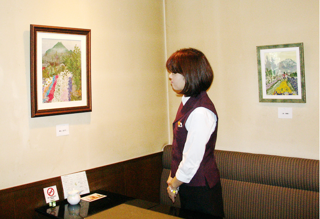 桜町サークルの生徒の力作が並ぶ押し花アート展