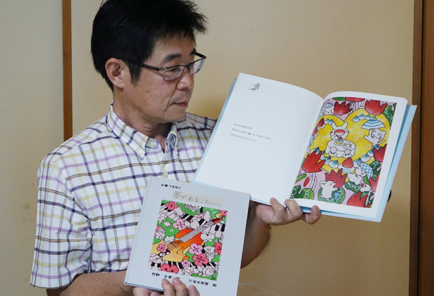 絵本を手にする西野友章さん
