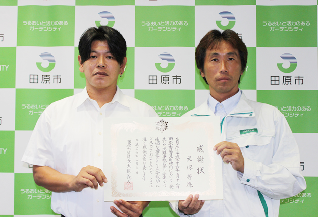 サーフィン中に水難救助/田原市消防本部が犬塚さんに感謝状