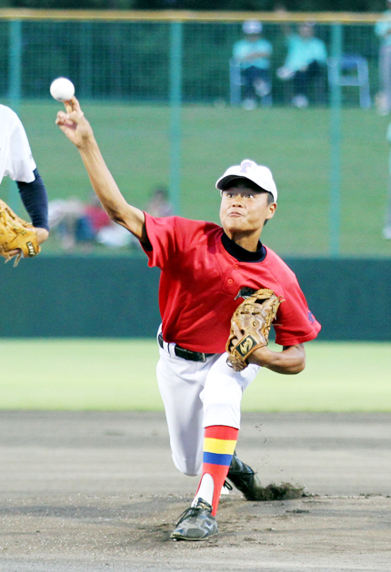 始球式で力強い速球を投げ込んだ片桐光之典くん