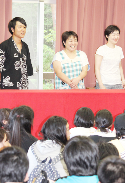 生徒たちに話をする神田さん㊧ら