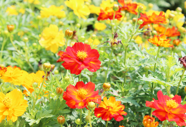 田原市芦ヶ池の農業公園、サンテパルクたはらで残暑の日差しのなか、キバナコスモスが咲いている。来場者は一足早い秋の訪れを楽しんでいる。 キバナ(黄花)コスモスは、7月末から花をつけ始め、見ごろは9月いっぱいまで。 同所の担当者は「昨年に比べ...