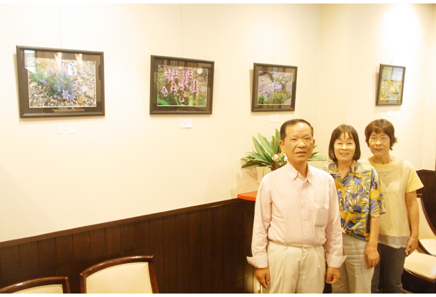 「花の魅力を伝えたい」と話す小野田さん㊧と妻の美代子さん㊥ら