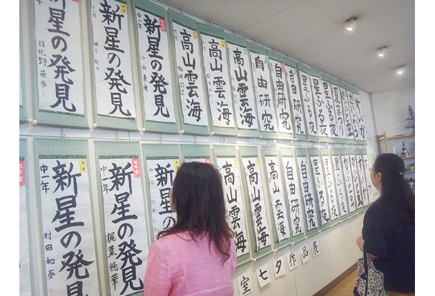子どもたちの画仙紙課題の作品が並ぶ