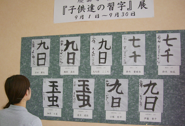 豊橋商工信用組合田原支店(川中英資支店長)で、小学生による「子供達の習字」展が開かれている。30日まで。 田原市の慶雲寺(桑山智志住職)の大広間が会場の習字教室に通う小学生28人が、学年別のテーマに沿って書いた28点を展示。 「七千」「九...