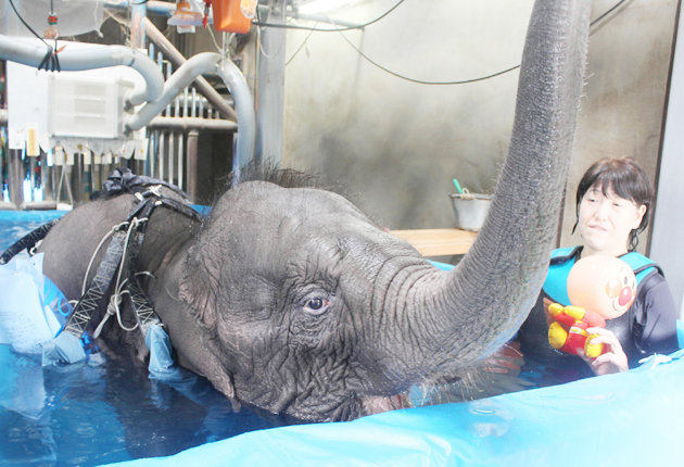 豊橋総合動植物公園/懸命のリハビリ続く/水中では1時間半歩行訓練が可能に/動き活発も筋力増強課題/来園者の声 疲れ見える職員の支えに