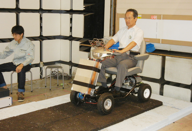 電化床の上で電動カートを操作する大平孝教授