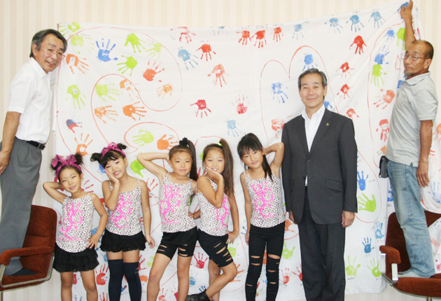 稲葉市長(右から2人目)に実施報告をした実行委とキッズダンスチームのメンバー
