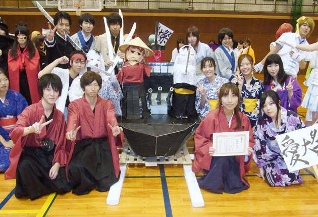 「みこし・仮装コンテスト」で優勝した映画研究会のメンバー