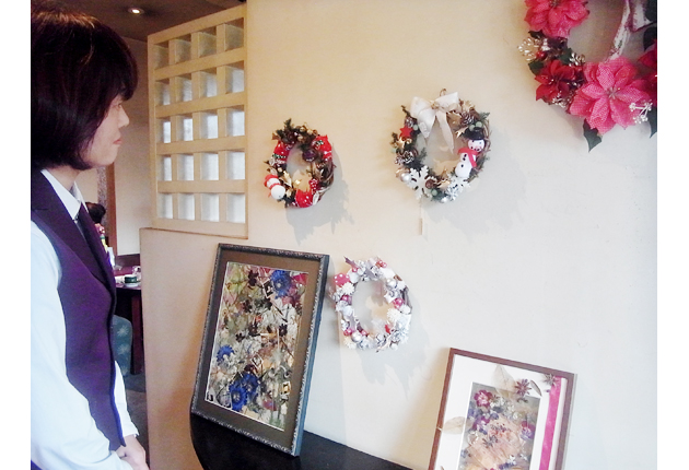 豊橋・珈琲館ピアで16日まで押し花・Xマスリース作品展