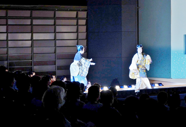 本花道での、舟長・藤間勘貴和さん㊧と狂女の藤間勘海土さん