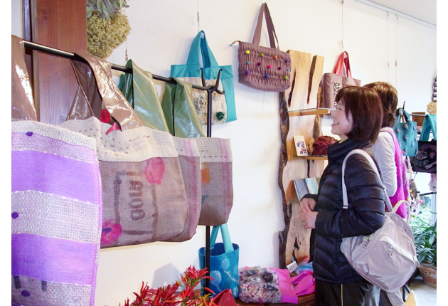 フェルトのバッグなどが並ぶ「亜沙のフェルト展」