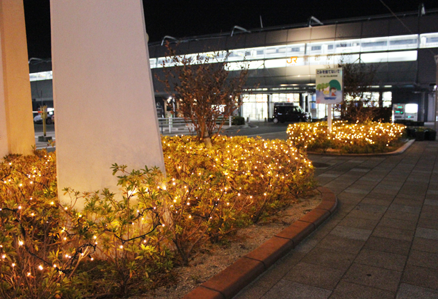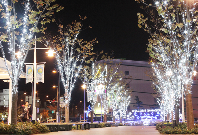 JR蒲郡駅前でイルミネーションの点灯が始まり、道行く人たちの目を楽しませている。駅の南側は蒲郡の海をイメージした青色、北側は特産ミカンのオレンジ色で彩られ、幻想的な空間が広がる。 南口のケヤキ並木には、集光型の白色電球が施されている。市制...