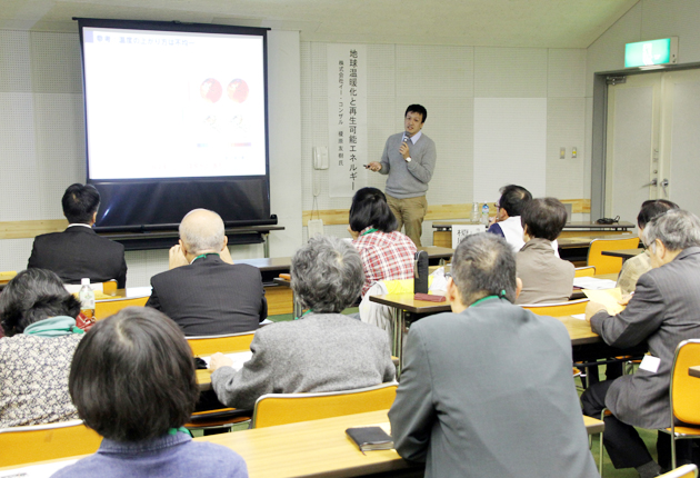地球温暖化などの気候変動や地域環境について考える再生可能エネルギー塾2014(第1回)は22日、新城文化会館で開かれ、榎原友樹氏が「明日の地球を考えよう」をテーマに講演を行った。 今回の再生可能エネ塾には、約30人の地域住民が参加。持続可...