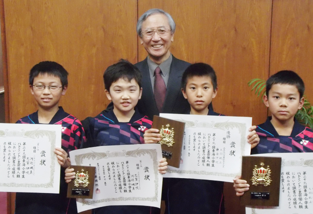 12月25日から29日まで新潟県で開催される第23回全国小学生バドミントン大会に出場する児童4人が26日、田原市役所を訪れ、嶋津隆文教育長に大会への意気込みを語った。 河辺颯真さん(東部小6年)は「ベスト4以上を目指す」、志賀伊吹さん(衣...