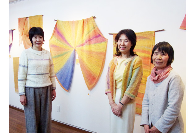 「染織三人展」を開く(左から)宮脇さん、リットンさん、佃さん