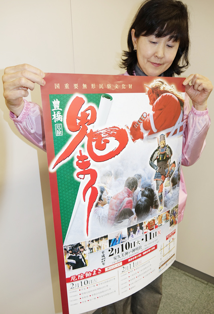 豊橋市八町通3の安久美神戸(あくみかんべ)神明社で来年2月10、11両日に開かれる「鬼祭り」(国重要無形民俗文化財)をPRするポスターが完成した。 平安時代から室町時代にかけての田楽の要素を継承した神事で、豊橋鬼祭保存会と豊橋鬼祭奉賛会の...