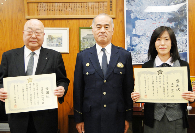 岡崎信金職員と松山郵便局/豊橋署が感謝状