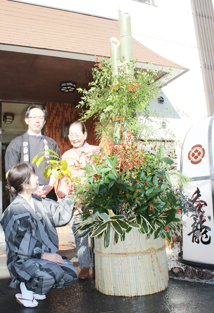 豊川市御津町の料理旅館「呑龍」と姉妹店の食事処「葵生(きせい)庵」に設置した高さ約3メートルの門松が訪れる人の目を楽しませている。1月中旬まで。 40年以上前から続けている門松飾り。材料は全て同館が立地する御津山のもの。モウソウチクを中心...