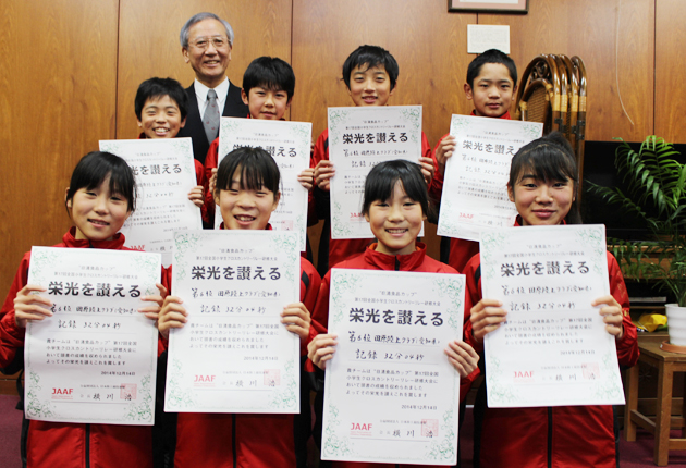 大阪府で13、14日の両日開催された、第17回全国小学生クロスカントリーリレー研修大会に出場した田原陸上クラブの児童8人は25日、田原市役所を訪れ、嶋津隆文教育長に6位に入賞した喜びを報告した。 同大会には全国から50チームが出場。8人は...