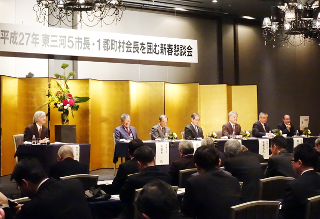 東三河の自治体の首長による新春懇談会(ホテルアークリッシュ豊橋で、新村猛撮影)