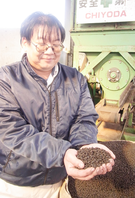 最後はペレット状に加工し有機肥料として販売される