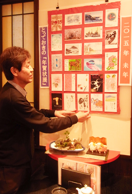 田原市はなとき通りの珈琲本舗いとう屋で8日から、17回目の「とっておきの年賀状展」が始まった。同店や常連客の元に届いた年賀状など350点余りが展示されている。31日まで。 同店長の伊藤明弘さんが「自分だけ見るのはもったいない」と始めた同企...