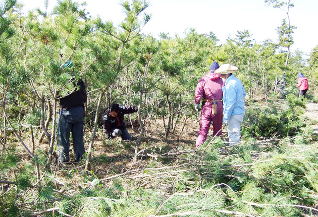 西ノ浜でクロマツ除伐/次世代へつながれ NPO会員ら30人